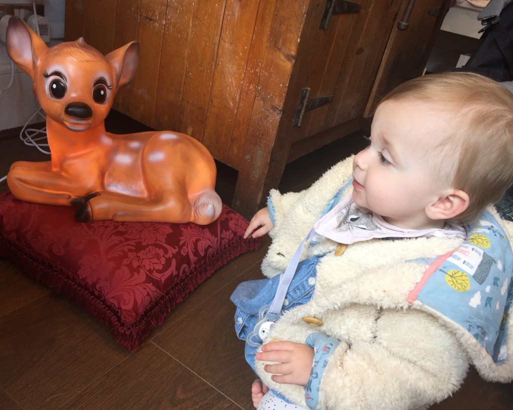 Bab reluctantly poses with Heico’s Bambi Fawn Lamp at Maison Auguste