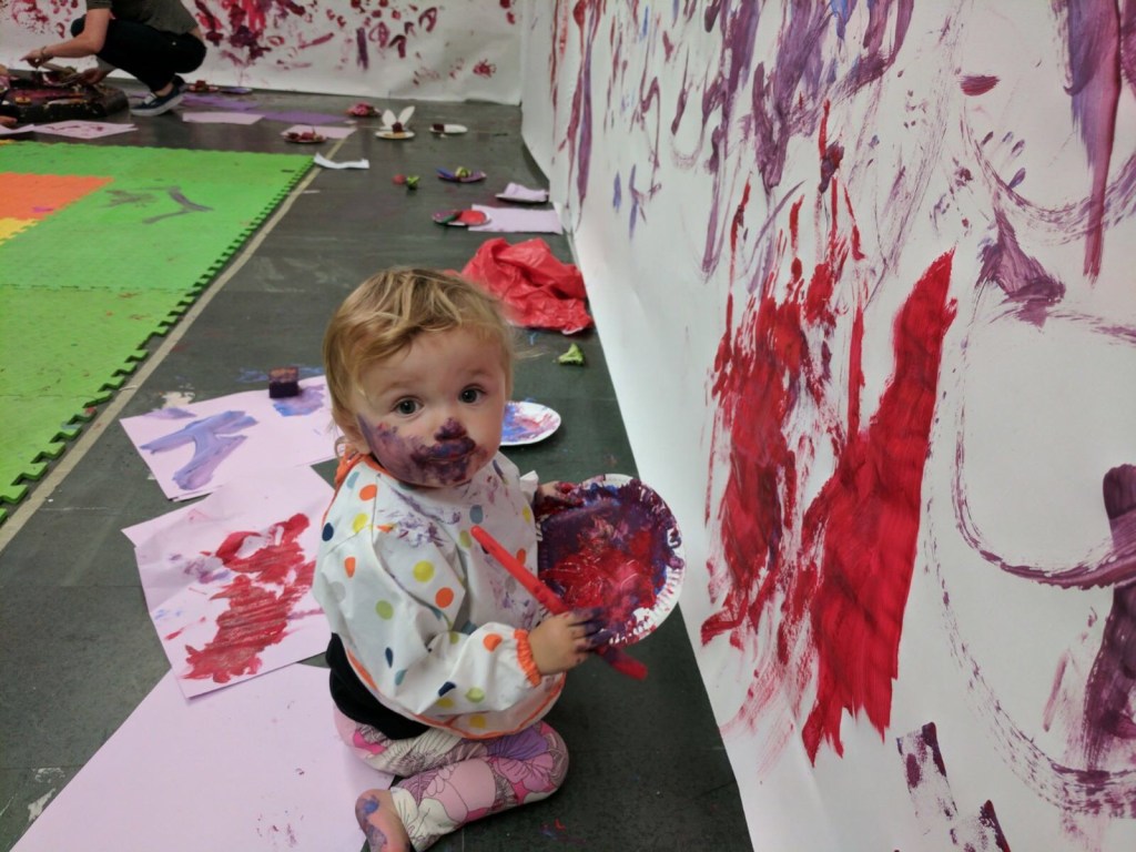 The National Gallery understands the importance of creative stimuli, both for pint-sized Picassos and their carers, beginning its Messy Mondays classes with a tour of its Pigott Education Centre’s downstairs galleries and a short group discussion of a chosen painting (with some singing shoehorned in, of course) that then supposedly becomes the catalyst for the entire session. Supposedly because, as one might imagine where under-fives are involved, the whole thing is a bit tenuous. I mean, let’s face it, you can talk at a one year old about flowers and butterflies until the cows come home but ultimately all you’re going to do is insert a paintbrush in their fist and grit your teeth while they splash paint indiscriminately at the wall before giving up and decorating your face instead.