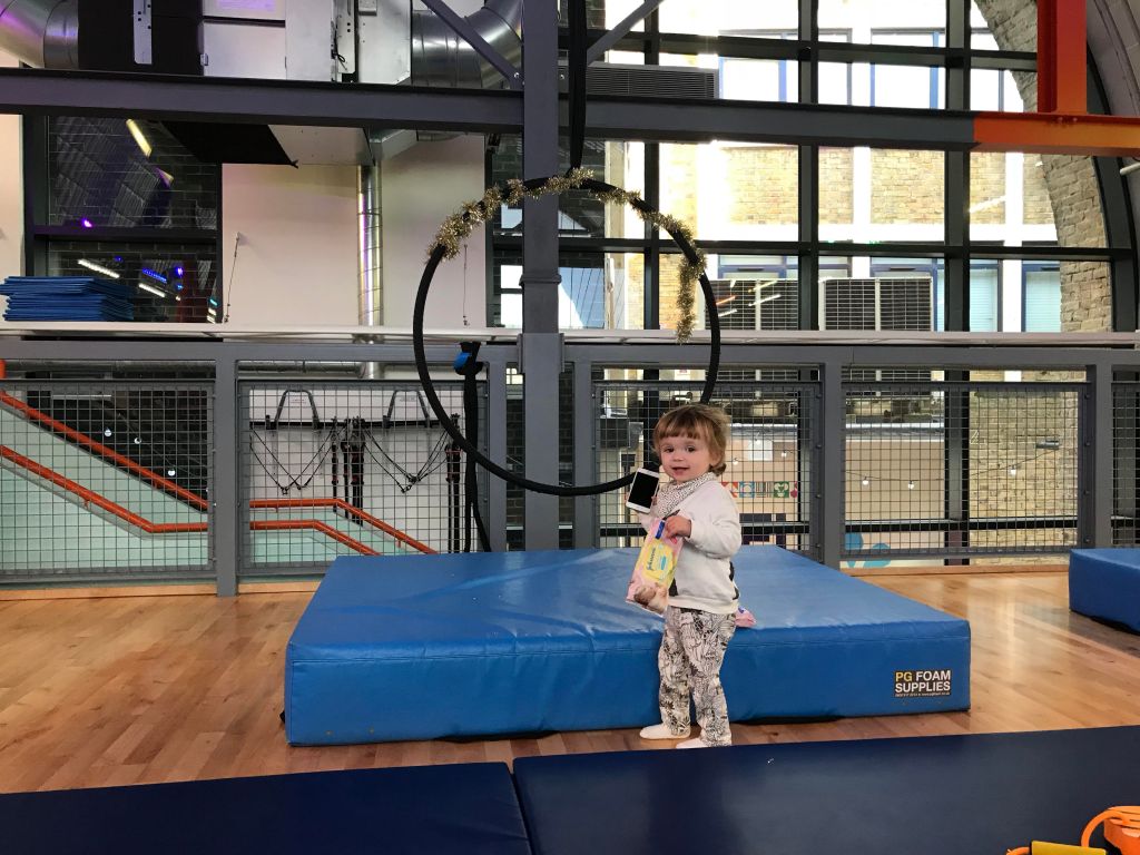 So not a roaring success on this occasion, but there’s still a lot of potential for a different day when she’s less tired and less keen to wipe stuff. I really liked the free-flow aspect and the way no one was forced to do anything they didn’t want to (I think if my school PE teachers had taken the same approach I might have developed a healthier relationship with exercise in general), and this is definitely one of the most unique and exciting parent-and-toddler activities out there. The class is particularly good for parents with aerial experience who are keen to get in a workout with their little one in tow, but also works well for total beginners like me since the equipment is rigged to hang close to the floor and there are plenty of shrewdly placed crash mats to avert disasters big and small. I just hope next time we’ll get the chance to be saved by one.