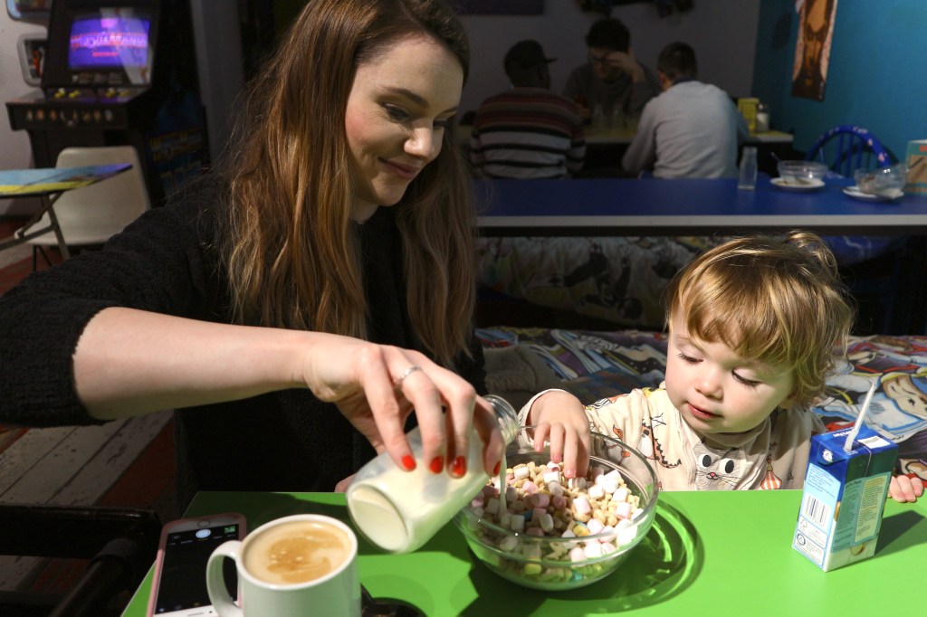 Mummy and Bab keep it cereal at Cereal Killer Cafe, Camden Stables Market.
