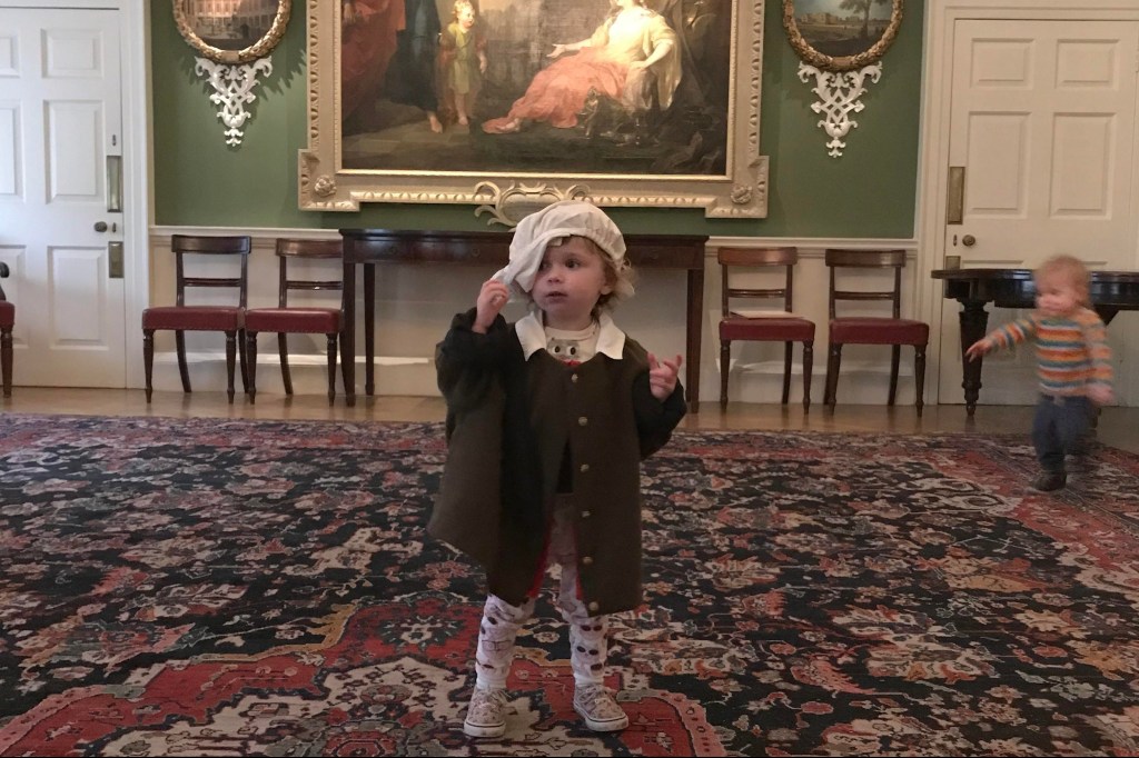 Bab plays dress-up at The Foundling Museum, Bloomsbury.