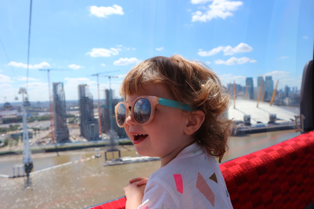 Bab enjoys the view on board the Emirates Air Line, North Greenwich.