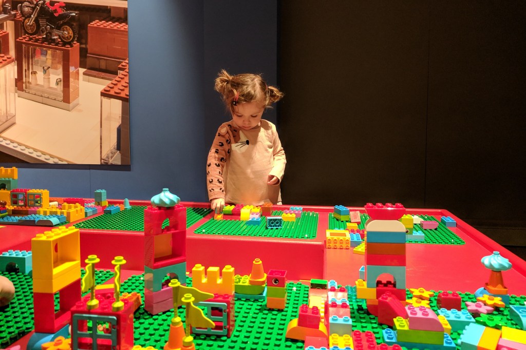 Ok so the exhibition is relatively small considering the £8-per-adult price tag, but it’s still about a 10th of the price of an annual pass for LEGOLAND and infinitely more civilised than letting your toddlers squabble over bricks at your nearest LEGO store. To be honest it’s actually pretty good value considering that the exhibition’s play opportunities are essentially endless and – if you can bear it – you can probably get a full day’s play out of it. We spent two hours there and Babu basically just installed herself at one of the LEGO tables for the duration, despite us trying to make her do all the other bits just so we felt we’d got our money’s worth.