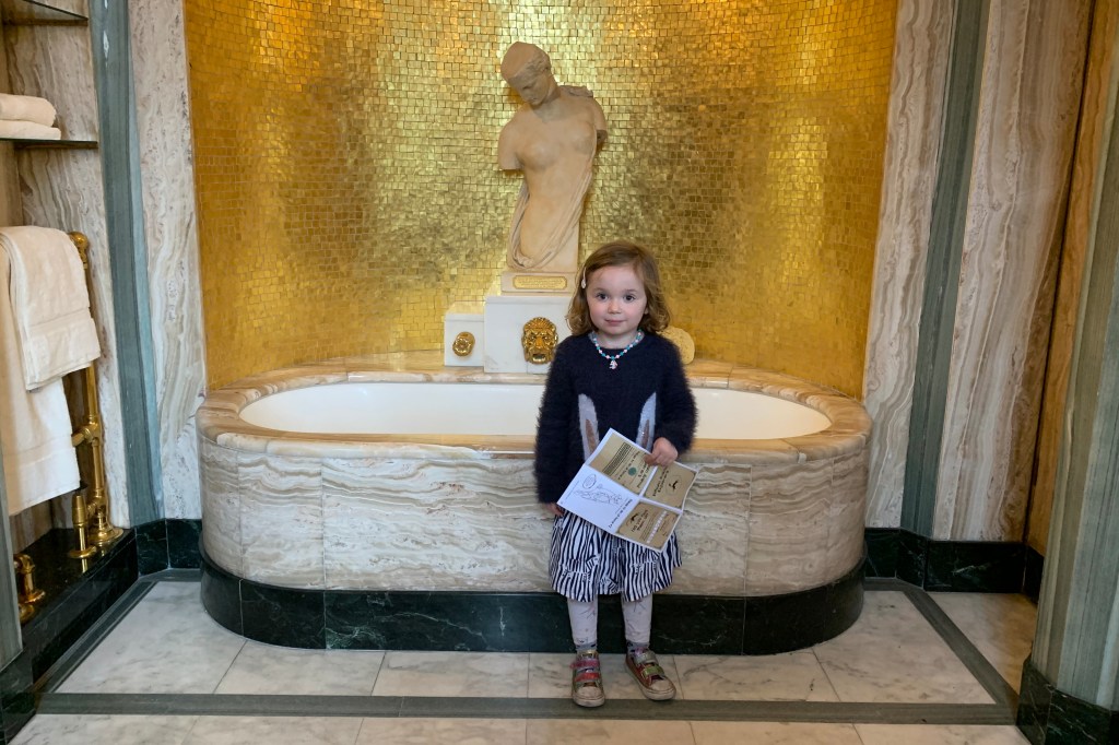 To be honest just being able to poke around this place, ogle the ridiculously dramatic decor and generally imagine the kind of lols that went on here is enough of an amusement for a Sunday afternoon and Babu genuinely seemed to find the house itself really fascinating. What really made her visit though was the Animal Explorer Trail – a worksheet that required her to locate animal motifs in various rooms around the house (with varying levels of difficulty) and then stamp the sheet to eventually reveal a secret word. The completed sheet could then be exchanged for a sticker in the gift shop on our way out, except I totally missed that last bit so she didn’t get the sticker and I’ll forever feel like a terrible parent for it, even if I did let her have a massive slice of cake in the cafe.