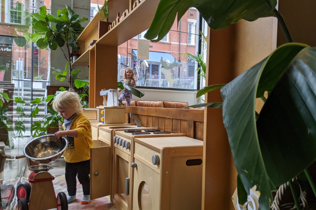 Roro and Babu check out the play area at Maggie & Rose cafe, Islington.