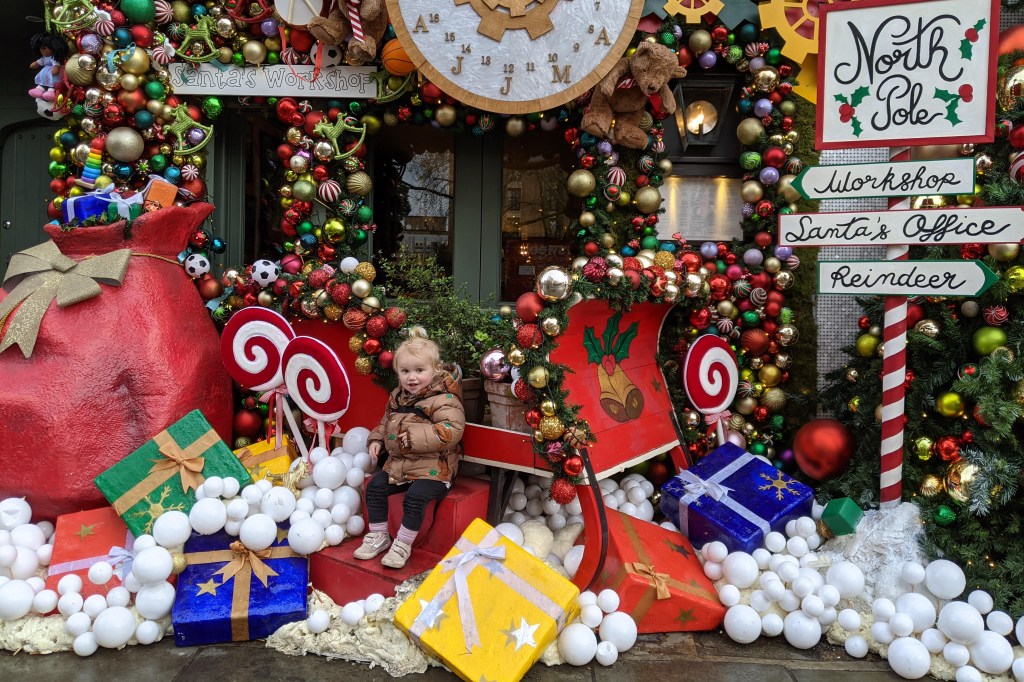 Roma hangs out in Santa’s workshop outside The Ivy, Chelsea.