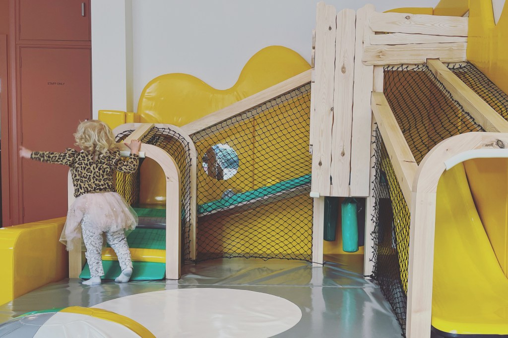 Roma explores the younger kids’ play fram at Cheeky Chops Play Cafe, Twickenham.