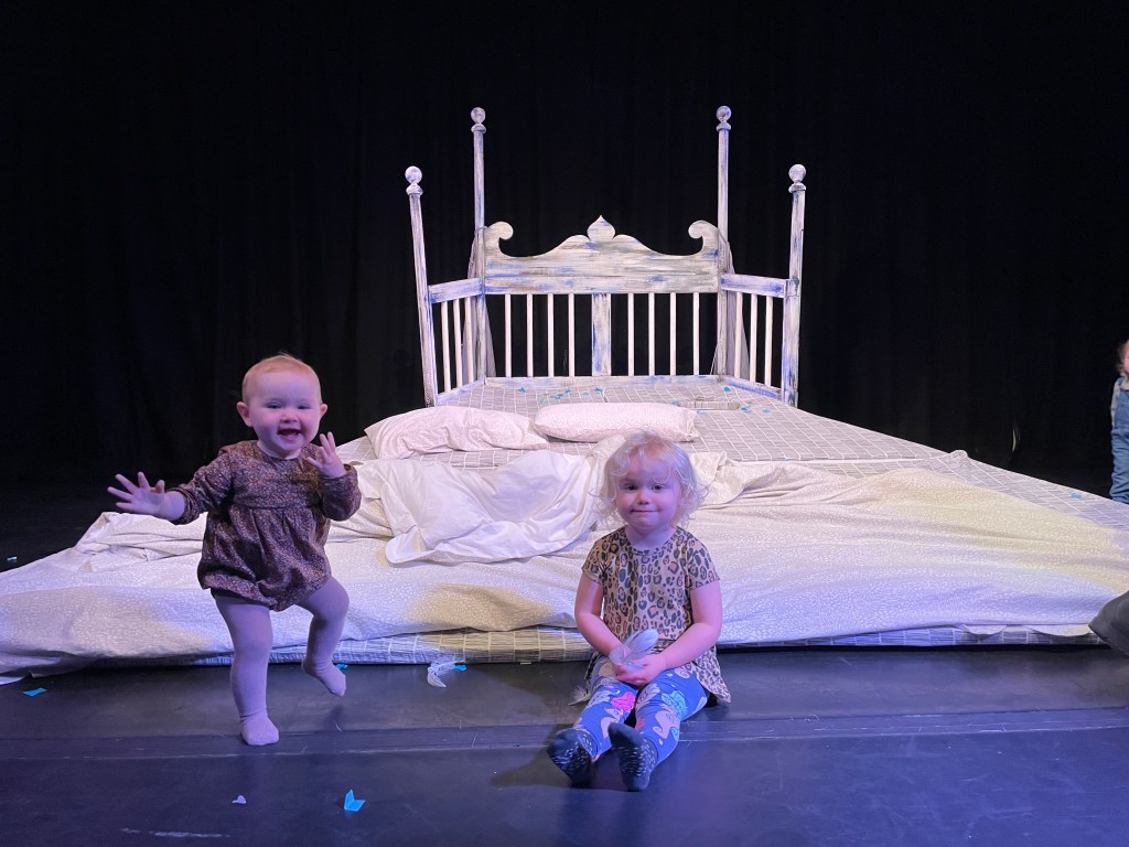Greta & Ro hang out on the set of The Bed at Little Angel Theatre, Angel.