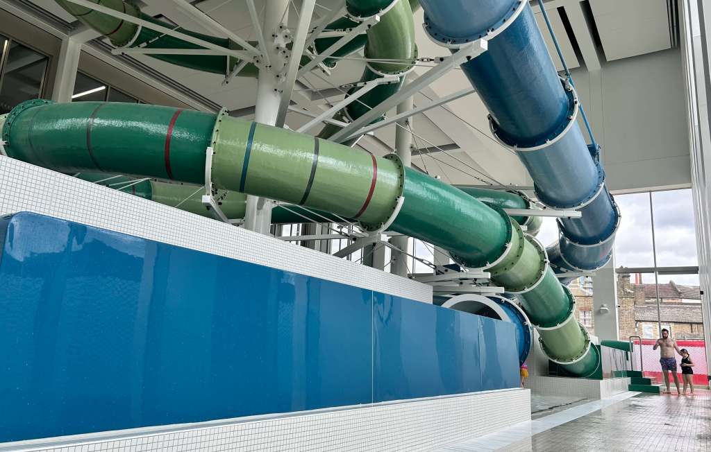 Which sounds like a bit of a weird boast when that grand total is two, but then this is London, where space to install humungous snaking waterslides comes at a massive premium. And anyway, it’s still double the number of flumes of any other London leisure pool (Bromley Pavilion recently had its pair of waterslides dismantled due to wear and tear, and Archway, Leyton Lagoon and Britannia all have one each, in various states of disrepair).